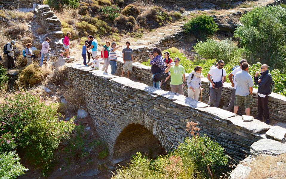Αλλο σημαντικό ζήτημα είναι το θέμα των πυρκαγιών και της ανεξέλεγκτης βόσκησης αιγοπροβάτων, που εντείνει τη διάβρωση του εδάφους και δημιουργεί ζημιές (κατολισθήσεις, πεσμένες ξερολιθιές κ.λπ.). Συχνά μοιάζει σαν να κολυμπά κανείς ενάντια στο ρεύμα με τη συντήρηση μονοπατιών, αφού οι περισσότερες συνθήκες που ευνοούσαν τη διατήρησή τους σήμερα εκλείπουν. Και αναφέρομαι στην εγκατάλειψη της γεωργίας, στο πλαίσιο της οποίας οι άνθρωποι φρόντιζαν τα μονοπάτια ως τμήμα της αγροτικής δραστηριότητας στο χώρο, σε συνδυασμό με την αύξηση των κοπαδιών αιγοπροβάτων λόγω των ευρωπαϊκών επιδοτήσεων, τα οποία βόσκουν ανεξέλεγκτα. Εξαιτίας της τελευταίας συνθήκης υπάρχει μεγάλο πρόβλημα πυρκαγιών στην Ανδρο, ώστε να δημιουργηθούν περισσότερα βοσκοτόπια. Χρειάζεται περίσσιος κόπος για να συντηρηθεί κάτι τη στιγμή που οι συνθήκες οι οποίες το δημιούργησαν και το συντηρούσαν έως σήμερα φθίνουν. Είναι ερώτημα, και αν θέλετε ζήτημα, το κατά πόσο τα νέα δεδομένα μέσω του τουρισμού θα μπορέσουν να δημιουργήσουν δομές συντήρησης παλαιών πόρων μέσα από μια νέα πραγματικότητα. Και κατά πόσο θα μπορέσει ο τουρισμός να συμπαρασύρει αναζωογονητικά τον πρωτογενή τομέα σε αυτή την κατεύθυνση. Οσοι σπουδάσαμε τουρισμό ξέρουμε καλά πως μπορεί να συμβάλει στη βιωσιμότητα μιας περιοχής μόνο εφόσον διατηρείται σε υγιή κλίμακα εντός ορίων και εφόσον συνδέεται με την πρωτογενή παραγωγή. Εμείς, πάντως, γι’ αυτό προσπαθούμε.